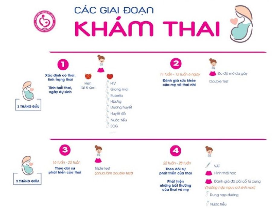 Các xét nghiệm sàng lọc khác nhau được cung cấp tại các thời điểm khác nhau trong thai kỳ.